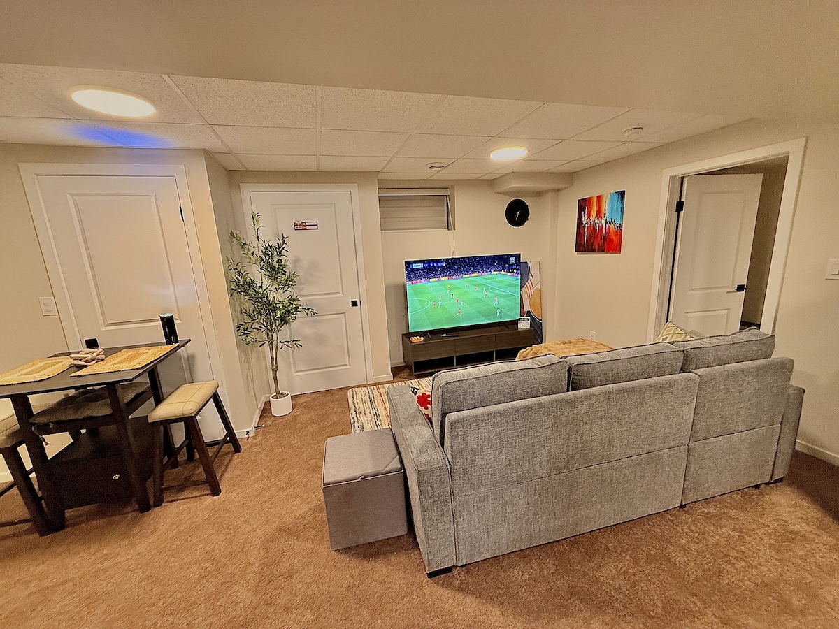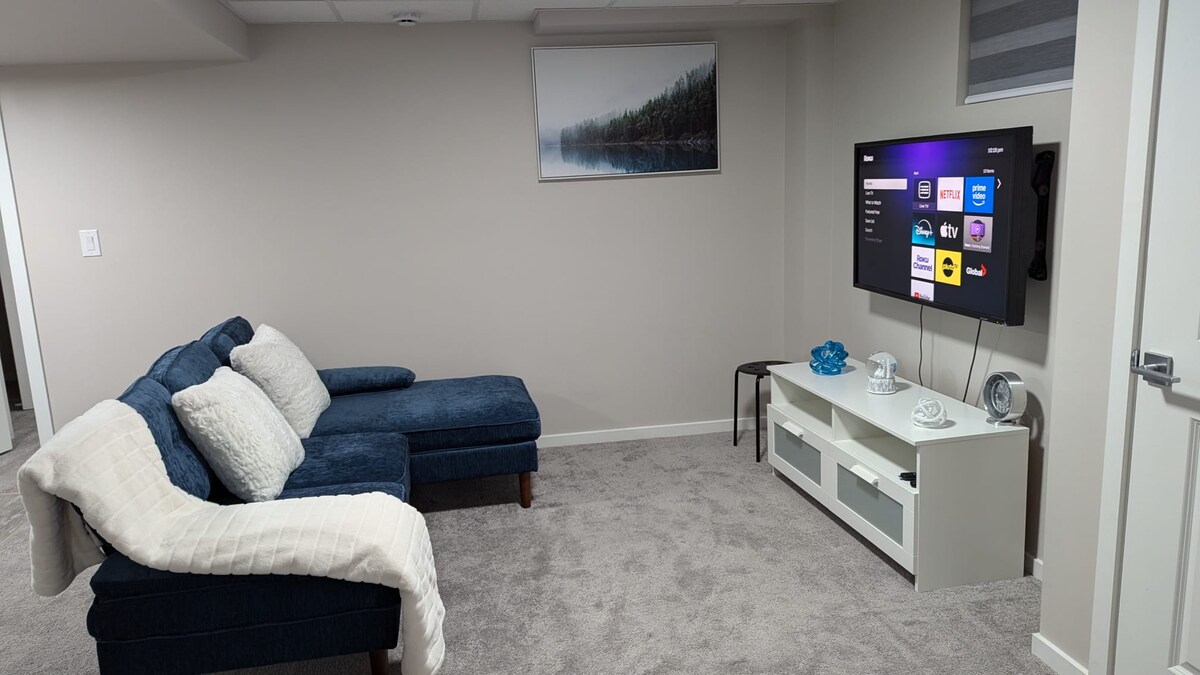 Kick back and relax in this calm, stylish space."Escape to a serene oasis! 🌟 Our luxury lakeview basement suite offers a tranquil retreat with stunning views of the lake. Enjoy a spacious one-bedroom layout, modern furnishings, and a walkout to nature. Perfect blend of style, peace, and safety - ideal for relaxation and rejuvenation. Well-appointed and meticulously maintained for your comfort."