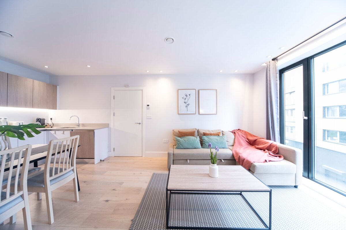 This Modern and Stylish 1-BR flat is perfect for up to 4 guests and is situated in Zone 1. It is only a 5-minute walk from Elephant & Castle tube stations, just 3 Stops to Big Ben, and 5 stops from Picadilly Circus! It features a spacious living area with a sofa-bed, chairs, a desk with a monitor and a Smart TV, a well-equipped open kitchen with a Nespresso machine, a bathroom with a bathtub, a separate bedroom with a UK Double-size bed, and ample storage space. Say goodbye to slow WiFi!