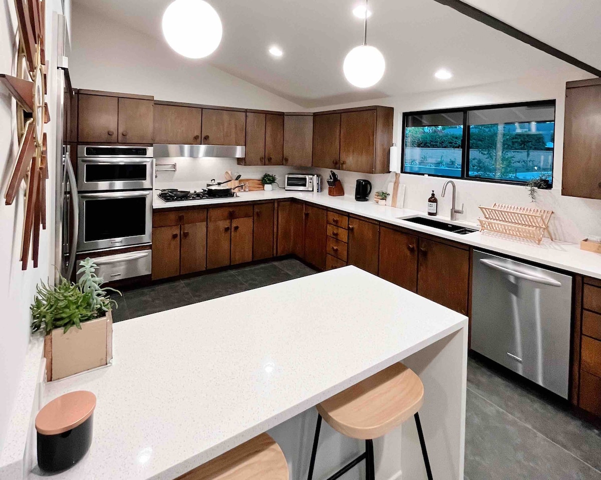 Relax and unwind in your private oasis in this newly remodeled Mid-Century Modern home! As you enter this 3 bedroom 2 bath home you'll be taken away by its stylish Mid-Century architecture and modern retro decor that are sure to inspire you! We've created a cozy, stylish & kickback place where you and your guests can relax and unwind in the spectacular backyard or simply spend the day by the cozy fireplace while you enjoy some vinyls!