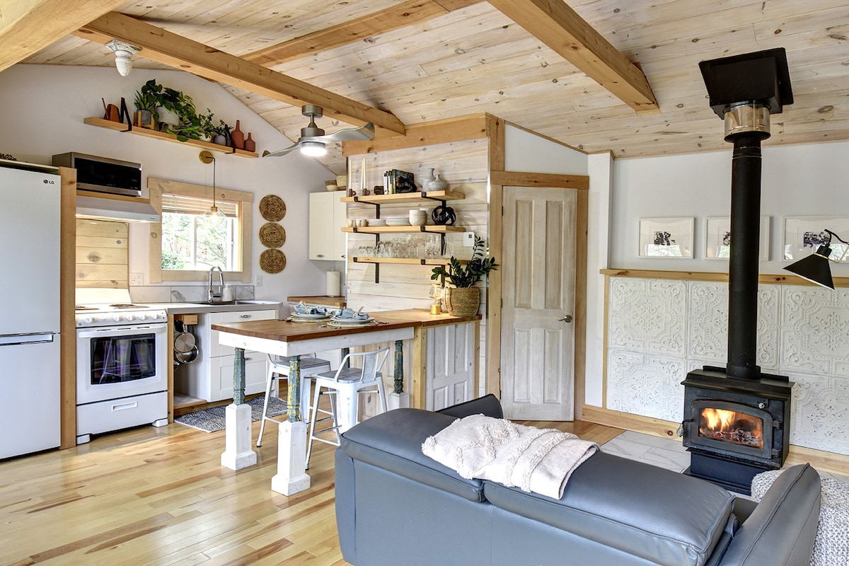私たちの北欧の森のシャレーは、カップル(または子供と)、または仕事のリトリート(高速Wi-Fi付き)として質の高い時間を過ごすのに最適です。木製の内装は暖かく快適です。背の高い窓からは、森の渓谷の素晴らしい景色が見えます。 オープンコンセプトのキッチンとリビングルームでは、料理をしながら会話を楽しむことができます。外で料理をしたい場合は、グリルと屋外ダイニングテーブルを備えたファイヤーピットがあります。 モントリオールから車でわずか70分です。近くに駐車すると、湖まで徒歩25分です。