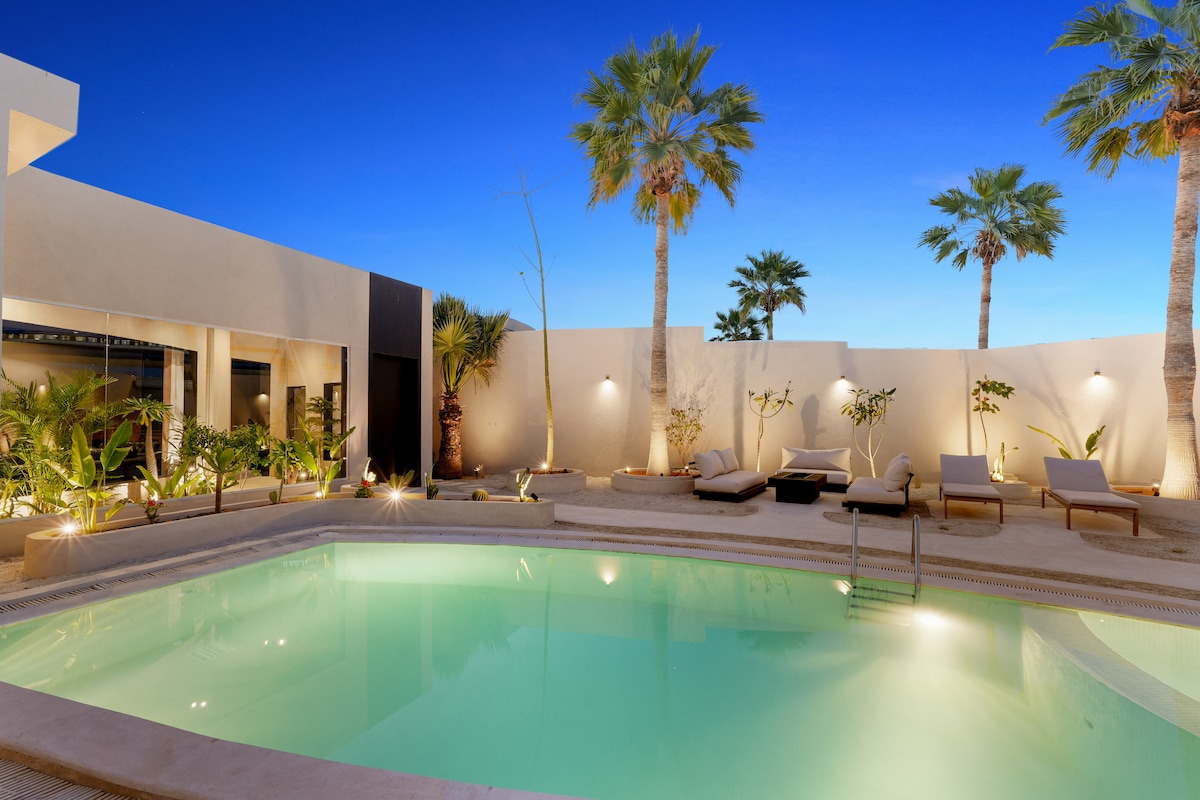 Bシャレー、モダンなデザインのプールと屋外シーティング