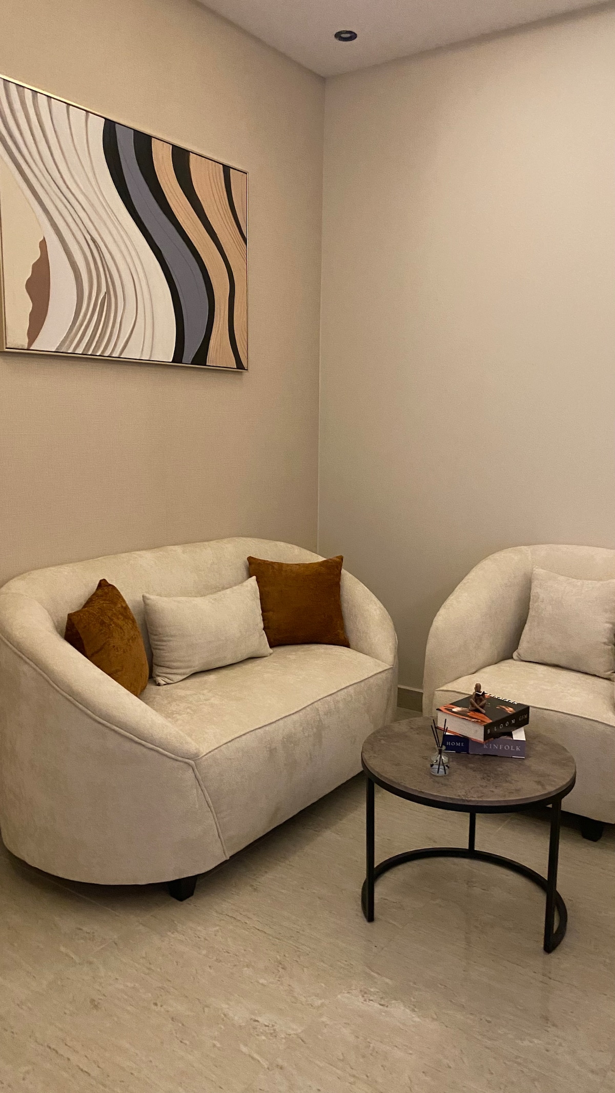 アルマルカにあるモダンでエレガントな1ベッドルームのアパートです。ブールバードリヤドシティ、ブールバードワールド&キングダムアリーナからわずか10分、ソリティアモールから8分です。 居心地の良いリビングルーム、ネスプレッソコーヒーバー、フルキッチン、スマートテレビ、キングサイズベッド、ベビーベッド、折りたたみベッド、セルフチェックインなど、ホテル並みの快適さをお楽しみください。 無料の軽食とドリンク、高速Wi-Fi、エアコン、専用駐車場、リヤドメトロに接続する近くのバス停へのアクセスが簡単です