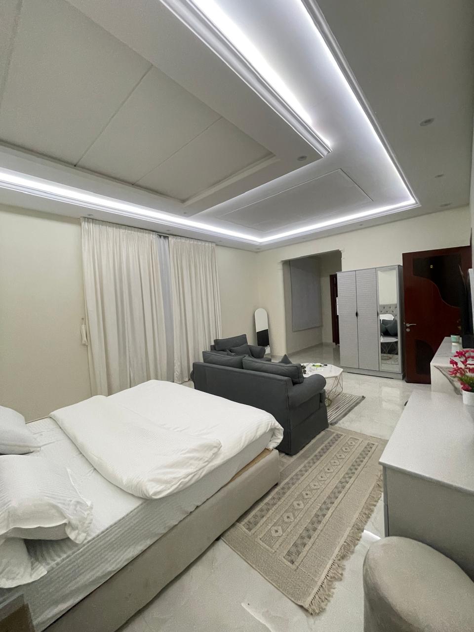 •広々としたホテルスイート、快適でモダンなデザイン、駐車場付きのモダンな建物 セルフチェックイン+ WiFi +医療用マットレス+高品質の快適なソファ+コーヒーコーナー+地上駐車場+ホテル用品+統合キッチン。 •サイトの特徴: - •北部中央部の中央部の位置は北部環状道路から1キロです - 空港15分 - ファイナンシャルセンター12分 -リヤドパーク、ナヒールモール、グラナダモール20 - 10分 - リヤドとブルバードシーズンの場所とイベント20 -15分 - イマーム大学、プリンセス・ヌーラ大学、電子大学15 - 10分 • 注意⚠️ - ゲストのための適切な時間に毎日ホテルの清掃