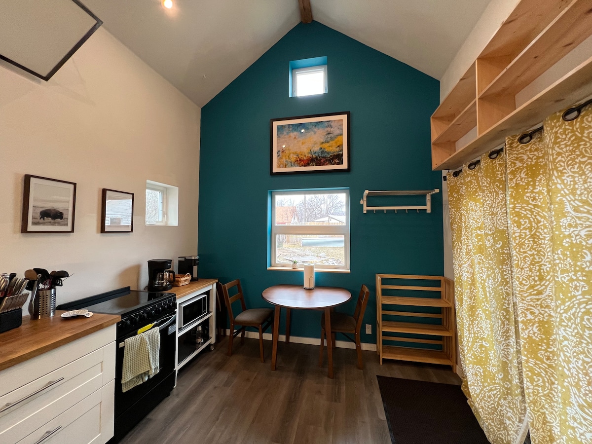 ゲストハウスは、ガーデンズ・ウェスト・スプリングスのダウンタウン中心部に位置しています。温泉プールやダウンタウンのレストランまで歩いて簡単に行けます。川、ハイキング、マウンテンバイクのコースから数ブロックの「ダウンタウンディグス」には、手間のかからない快適なご滞在に必要なすべての快適さが備わっています。お部屋は小さく、タイニーハウスのようなもので、階段は船のはしごのようなスタイルで急です。写真をご覧ください。冒険に出かける前に、美しい木々に覆われたデッキでワインやコーヒーをお楽しみいただけます。 許可番号18-110