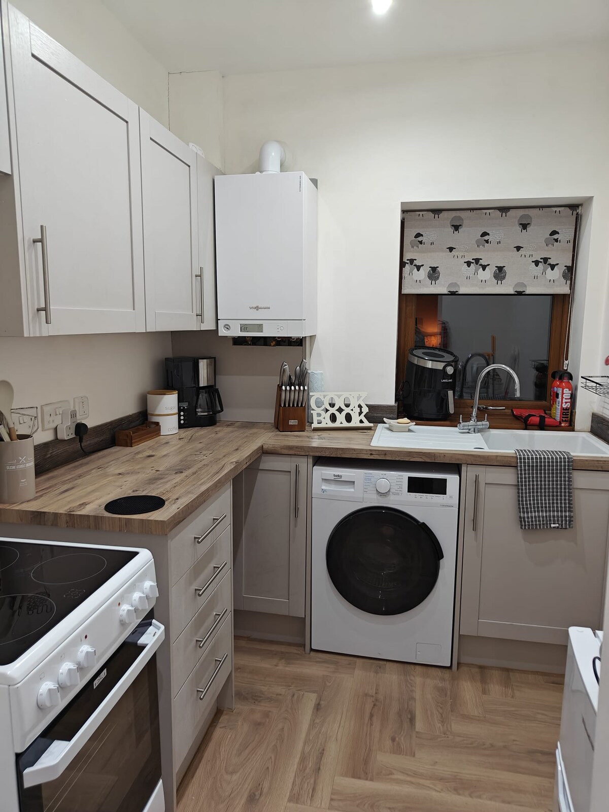 滞在中に必要なすべての基本的なものと必需品を備えた広々としたオープンプランのキッチン/リビングルームを備えた新しく改装されたアパートです。 ダブルベッド、ワードローブ、引き出し付きの居心地の良い寝室。 トイレ、洗面台、シャワーを備えた専用バスルームが完備されています。 アパートから徒歩1分のところに専用の駐車場があります。 こちらは2階のアパートですので、アクセスするには2段の小さな階段を上る必要がありますのでご注意ください。 車椅子の利用者や歩行困難な方には不向きです。