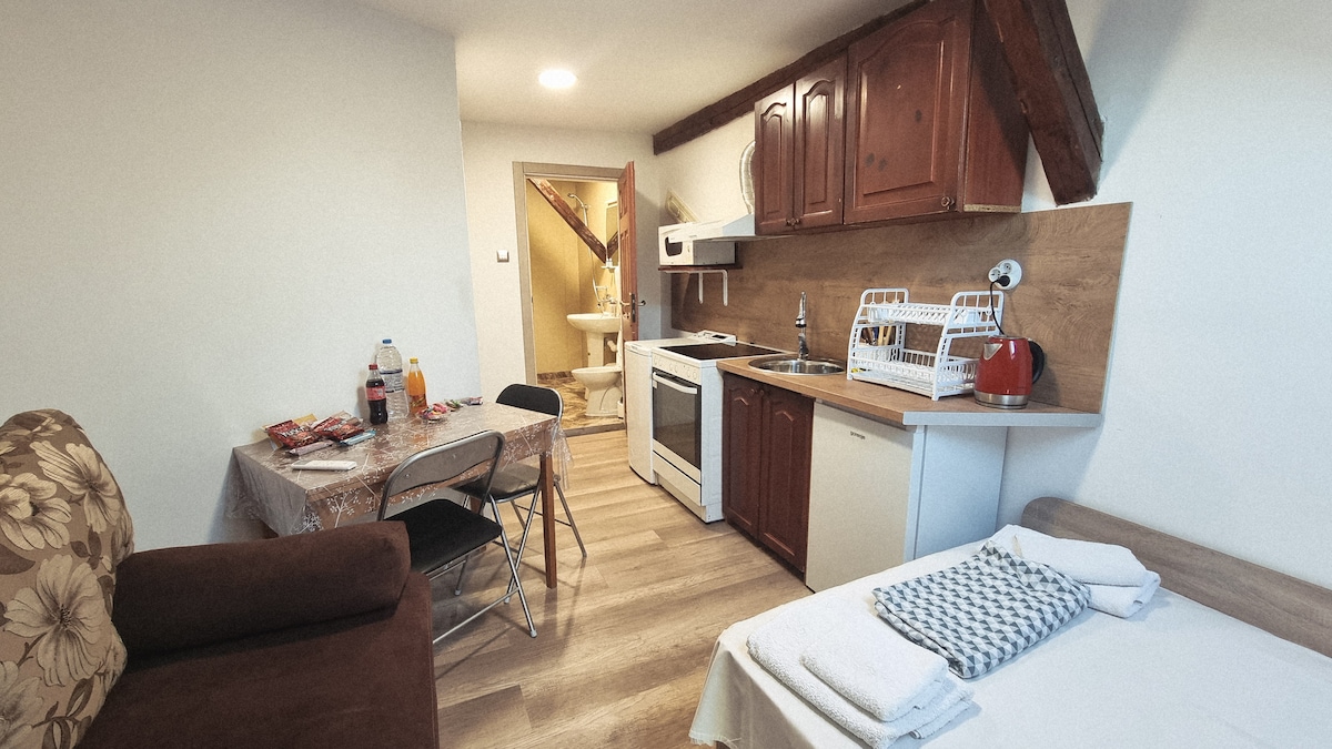 ✨Wake up to stunning mountain views in this cozy, newly renovated apartment in Vratsa—just a 10–15 minute walk from the lively city center. ✨ Perfect for nature lovers, with easy access to Vrachanski Balkan trails and Ledenika Cave. Relax on the balcony, cook your favorite meals in the full kitchen, and enjoy fast Wi-Fi. With two supermarkets across the street and bus and train stations nearby, everything you need is within reach. Your perfect home for a refreshing weekend getaway.