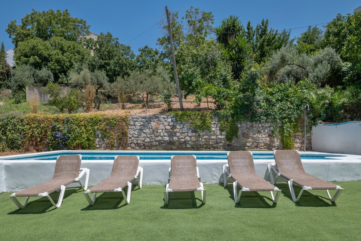 とても居心地が良く、田舎風に装飾された家。ロンダの山脈の中、グアディアロ川のほとりにあり、ロンダからわずか20分です。4つの寝室、2つのバスルーム、設備の整ったキッチン、広いリビングルーム、庭、プール、バーベキュー、暖炉。休暇に最適です。各フロアに2ベッドルームと1バスルームがあります。