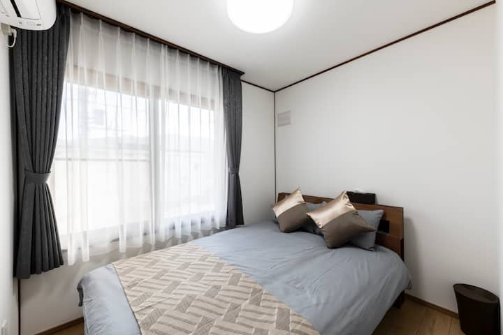 ベッドルームは2F。ゆったりとしたベッドでお休みいただけます。収納も多くあり旅行の荷物もゆったり収納できます。