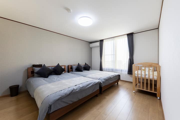 ベッドルーム3:ダブルベッド2台・ベビーベッド(2階・冷暖エアコン)