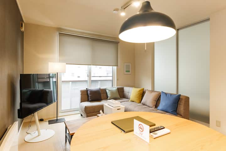 モノトーンの内装に合わせてシンプルな家具を選定し、旅先でも「札幌の我が家」として寛いでいただけるよう工夫しました。