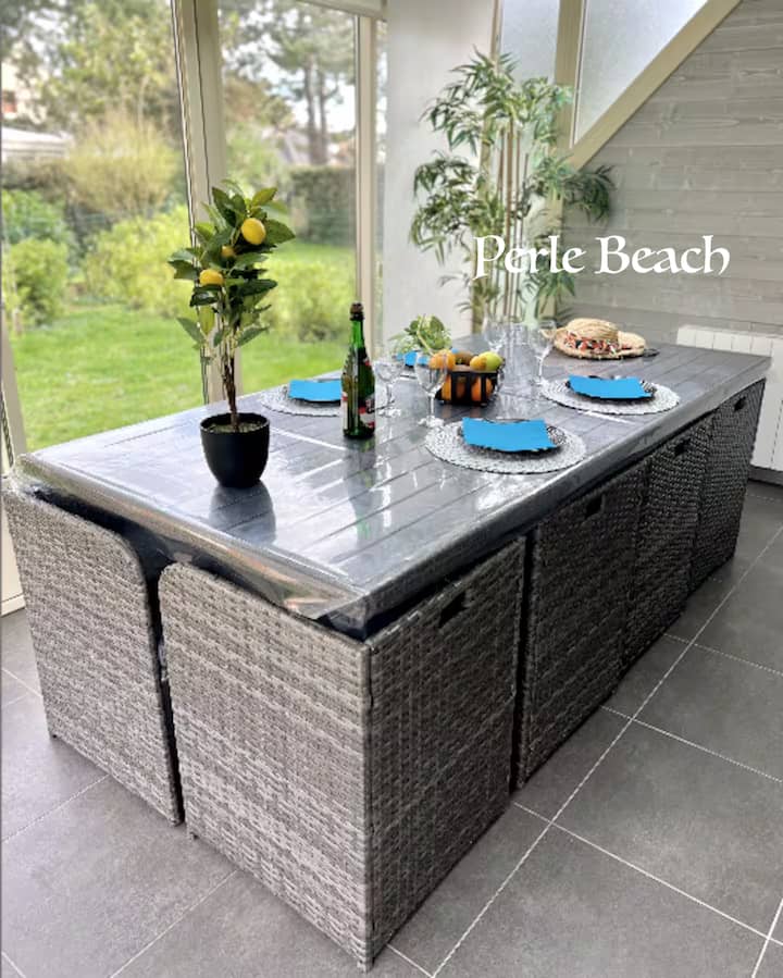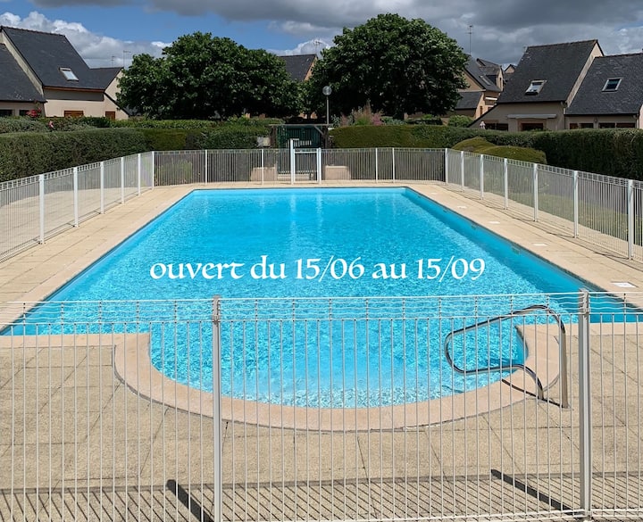 ビーチの端にある小さな家、プール付き。