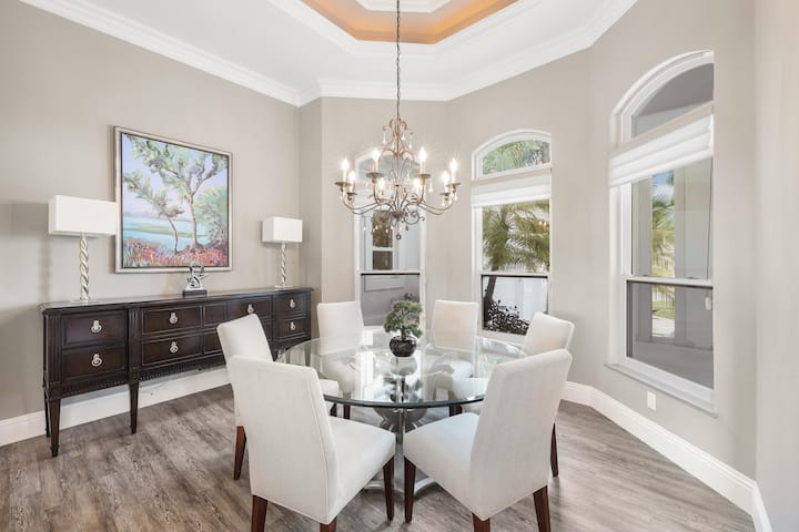 マルコアイランドの中心部にあるあなただけの隠れ家へようこそ。この3,400平方フィートの家には、キングベッド2台、2段ベッド1台、3.5バスルームがあり、7名様が宿泊できます。厳密に言えば、ペットを含めれば8人です。その通りです、ここはマルコアイランドの犬同伴専用の宿泊施設の1つです。また、3台分のガレージも備わっています。