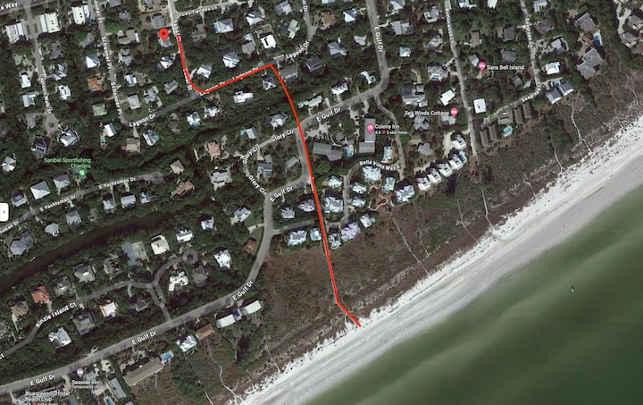 サニベル島の海岸沿いのコテージ - ビーチまで徒歩!