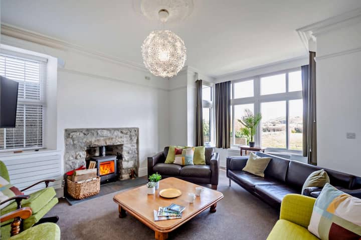 この美しく、思いやりを込めて修復された一軒家の農家は、絵に描いたような賑やかな海辺の村アバーソックに近いウェールズの海岸沿いの道にあり、素晴らしい海の景色を望む絶景の場所にあります。16人のゲストが宿泊できるFerm Ar Y Morは、海辺の休暇を過ごしたい人や、家族や大切な人と特別な機会を祝いたい人にとって素晴らしい場所です。