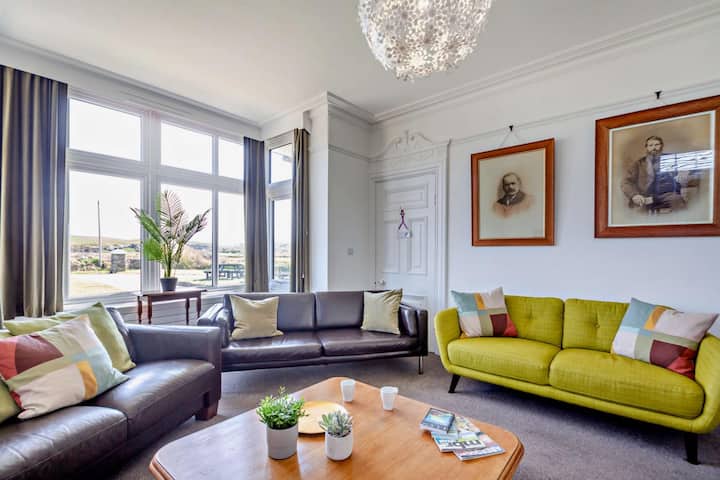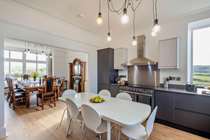 Fferm Ar Y Morは、オリジナルの特徴と家具を現代的なものと組み合わせています。快適な座席、修復された椅子、居心地の良い薪ストーブ、大きなスマートテレビを備えたラウンジでリラックスしておくつろぎください。上品に装飾された8つの寝室のうち1つ目は1階にあります。美しいダブルベッドルームと隣接するウェットルームは、歩行が不自由な方や車椅子をご利用の方を含むすべての方に適しています。さらに探索すると、広いキッチンとダイニングルームには、元の大きなオーク材のダイニングテーブルがあり、ダブルレンジマスターオーブン、2つのシンクと2つの食器洗い機、大きな食器棚、別のダブル冷蔵庫、ダブル冷凍庫が備わっています。食事を準備している間、大きな窓から海の景色を楽しみ、食事の時間には座って、すべてのゲストと楽しく交流しましょう。
