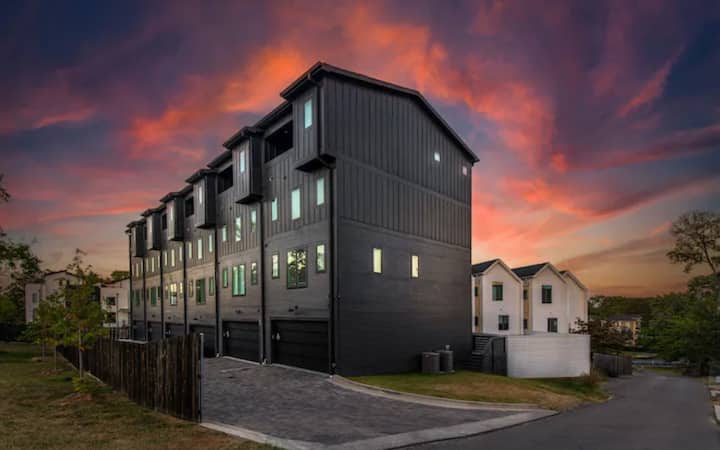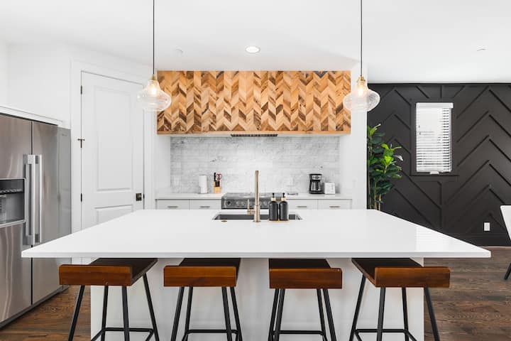 ガレージ、パティオ、ファイヤーピット - コーヒーやレストランまで徒歩