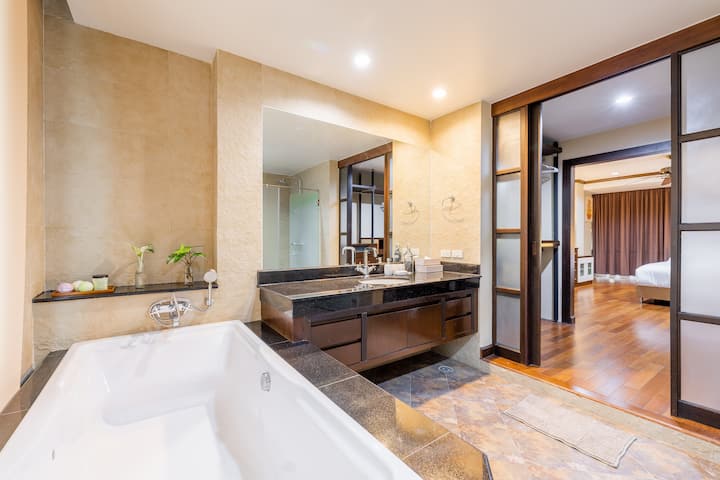 キングベッド2台|快適なコンドミニアム|カロンビーチまで500m