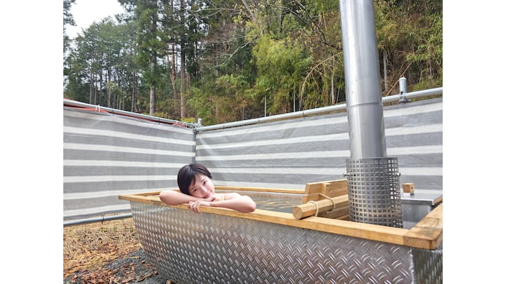 大自然に囲まれて薪風呂に入る気持ちよさを味わってください。