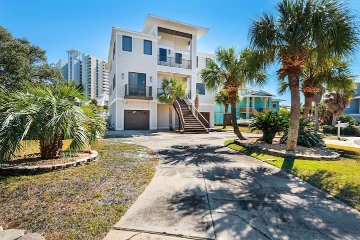 ピース・オブ・パラダイスは、ペンサコーラビーチにある美しくてユニークな家です。水辺の景色、ビーチへの簡単なアクセス、専用プール、ペグレッグピーツの近くにあるこの物件は、家族みんなで夢のバケーションを過ごせます。1階には、駐車スペース1台分と車道駐車スペース2台分のガレージ、専用プール、リラクゼーション用ウォーターアクセスデッキ、家に接続された大きな屋外デッキ、プロパングリルがあります。2階には、美しいリビングルーム、ダイニングエリア、大人数での料理に必要なものがすべて揃った広いキッチン、クイーンベッドルームが2部屋あります。3階には、スイート付きのマスターキングベッドルーム、2つ目のキングベッドルーム、フルサイズベッド2台の客室があります。この家にはスマートテレビ、無料Wi-Fiも備えられており、ペンサコーラビーチの白い砂浜へのアクセスも簡単です。「A Peace of Paradise」で豪華なバケーションを今すぐご予約ください!