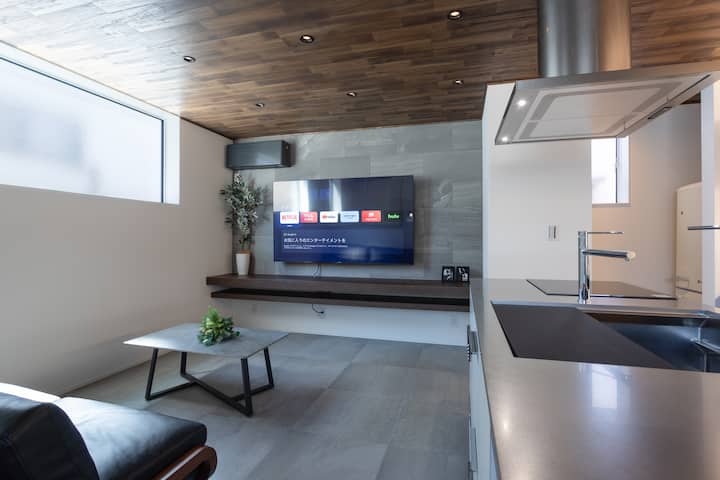 デザイナーズの1LDK。最大5名様まで宿泊可能。無料Wi-Fi完備。