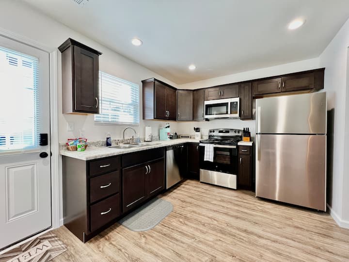新築のタウンハウスに入るとすぐに、快適さ、スタイル、利便性が融合していることがわかります。 この魅力的なリトリートを飾りつつ、ゲストにとって第二の我が家のような雰囲気を作り出すために一生懸命努力しました。 リビングスペースのオープンコンセプトの間取りにより、多くのゲストが滞在できます。 グループの全員が交流してリラックスするためのスペースがあります。