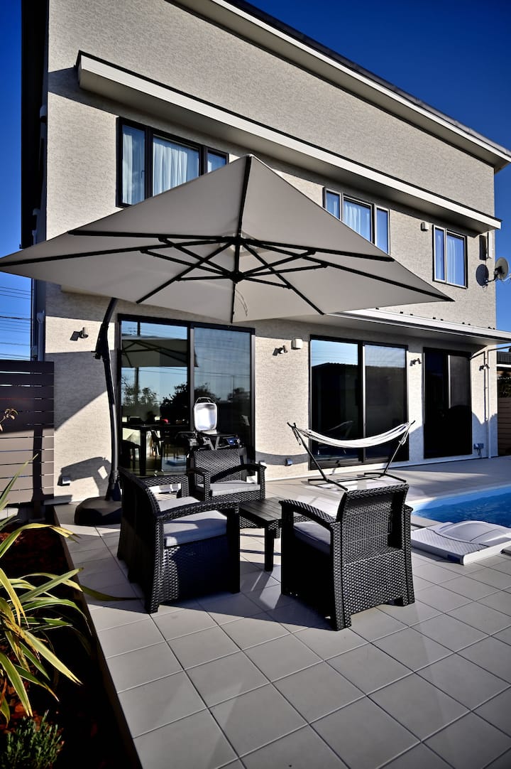 都心から約80分の好アクセス。千葉県・九十九里にひっそり佇む白亜の邸宅。