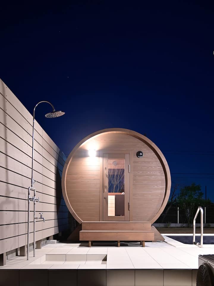 国産バレルロウリュサウナ&プール付き。