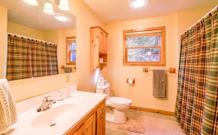 メイン州の森の中にあり、1700平方フィート以上の屋内と8エーカーの屋外スペースをお楽しみください。全館Wi-Fi、クイーンベッド3台、フルサイズのマーフィーベッドを備えたスペアのワークスペース/寝室、フルバスルーム2つ、オープンフロア、備品の揃ったキッチン、そして豊富なエンターテイメント。自然を愛する方や、ただ逃避したい方に最適です。