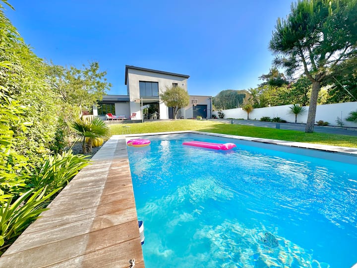 温水プール付きモダンな家