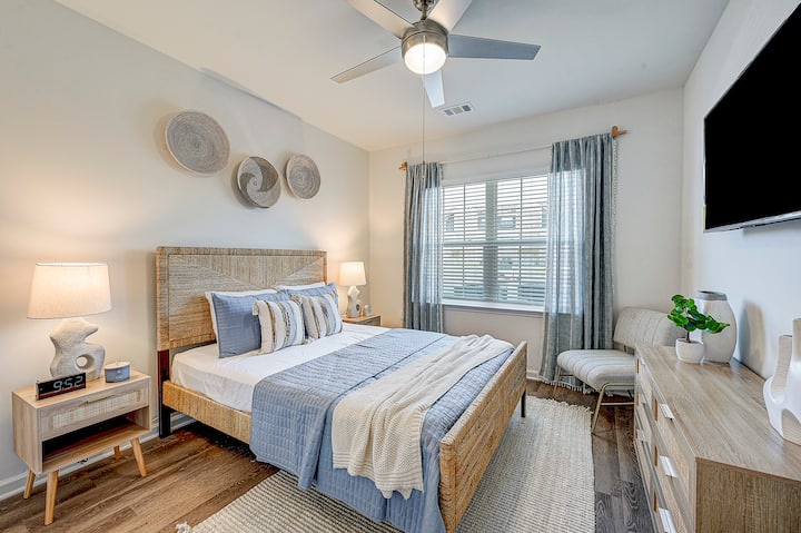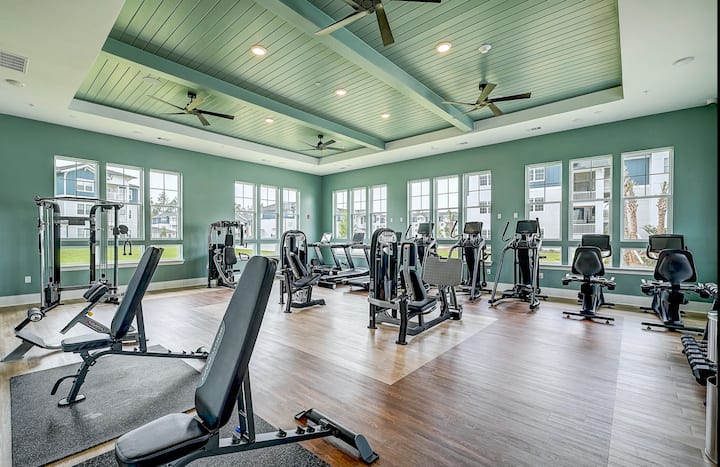 フェーンビーチ近くのシックな海岸沿いの宿泊先、プール、ジム、自然散策道