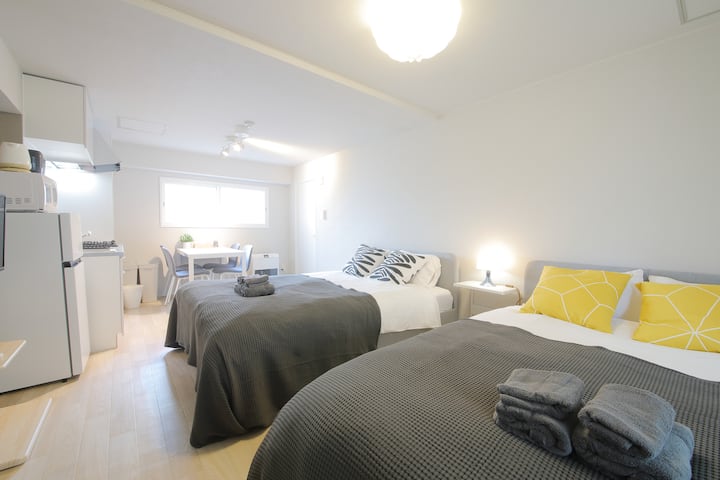 お部屋は1Kタイプで、基本的な調理器具が備えられたキッチンや、清潔に保たれたバスルームとトイレもあり、長期でも快適にお過ごし頂ける物件です。ご滞在時にあると嬉しい家電やアメニティも揃えております。賑やかな観光地エリアからご帰宅後、ごゆっくりとおくつろぎください。