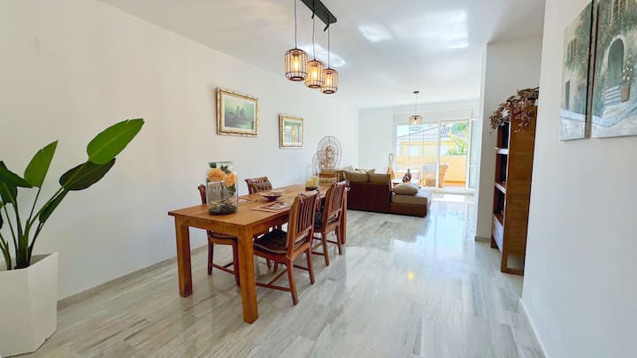 コスタ・デル・ソルの専門のバケーションレンタル代理店、マルベーリャ・バヌスで贅沢で快適にお過ごしください。 最高のロケーションにある独占的な宿泊施設を提供しており、忘れられない滞在をお約束します。 パーソナライズされたサービスと細部へのこだわりにより、すべての体験をユニークなものにしています。 私たちと一緒に地中海の魅力をお楽しみください! < br >< br >新しく改装されたアパートで、マルベーリャの美しいエリア、カボピーノにある特別なLas Mimosasゴルフ開発地にある、夢の休暇をお楽しみください! このホリデーアパートは、豪華さ、快適さ、コスタ・デル・ソルの自然の美しさの完璧なバランスを提供します。< br >アパートの特徴:< br >• ロケーション:静けさと壮大なビーチとカボピーノゴルフコースに近いラス・ミモサス・ゴルフ開発地に位置しています。 アパートは1階にあり、エレベーターや階段にすぐにアクセスできます。< br >• 広さ:アパートの面積は122平方メートルで、テラス面積は16平方メートルです。< br >• 定員:最大5名様までの宿泊施設で、家族や友人グループに最適です。 料金には折りたたみベッドが含まれており、お子様に最適です。< br >< br >• 寝室:< br > o マスターベッドルーム:ダブルベッドと大きな内蔵ワードローブ付き。 この寝室には、バスタブとビデを備えたエンスイートの大理石のバスルームがあります。< br > o 2つ目の寝室: 2つのシングルベッドと荷物を収納するための内蔵ワードローブが備わっています。 < br >•バスルーム: < br > o マスターバスルーム:バスタブとビデを備えたモダン な大理石のバスルーム。< br > o 2つ目のバスルーム:バスタブとビデを備えたエレガントな大理石のバスルーム。< br >• キッチン:食器洗い機、オーブン、フライパン、食器など、調理に必要なものがすべて揃った広々としたモダンなキッチン。< br >• ランドリールーム:衣類のお手入れに必要なものがすべて揃った小さなランドリールーム。< br >• リビングダイニングルーム:アパートに入ると、ソファベッドがある広々としたリビングダイニングルームがあります。 このスペースには、快適なL字型ソファとダイニングエリアを備えたテレビエリアがあります。< br >• テラス:リビングルームからは、屋外ダイニングエリアとリラックスできるエリアを含む家具完備のテラスにアクセスできます。 テラスからは部分的な海の景色を楽しむことができます。< br >• アメニティ:エアコン、無料Wi - Fi、洗濯機、アイロン。< br >• プールと庭園:コミュニティプールへのアクセス、一年中営業しており、手入れの行き届いた庭園は、リラックスして良い天気を楽しむのに最適です。< br >ベビーベッドは追加料金なしでご利用いただけます。 必要に応じて事前にお知らせください。< br >追加の利点:< br >ビーチへの近さ:< br > ビーチへの近さ:透き通った海と金色の砂で知られるカボピーノのビーチから車でわずか数分です。< br >• 近くのアクティビティ:ウォータースポーツ、ゴルフコース、ハイキングコース、エリア内の幅広いダイニングオプションをお楽しみください。< br >予約と連絡先:< br >詳細情報や予約については、お気軽にお問い合わせください。 忘れられない滞在をお楽しみいただけるよう、精一杯サポートさせていただきます! < br > Las Mimosas Golfですぐにお迎えできることを楽しみにしております。マルベーリャが提供するすべてをお楽しみいただければ幸いです。< br >< br >パーティー、イベント、コミュニティのルールに違反したり、近隣住民に迷惑をかけたりする行為(休憩時間中の大音量の音楽など)は固く禁じられています。< br >違反は返金なしで即時立ち退きとなります。