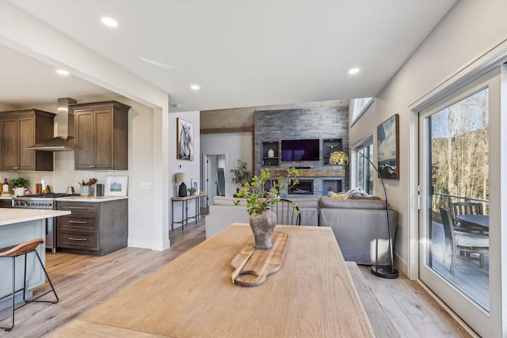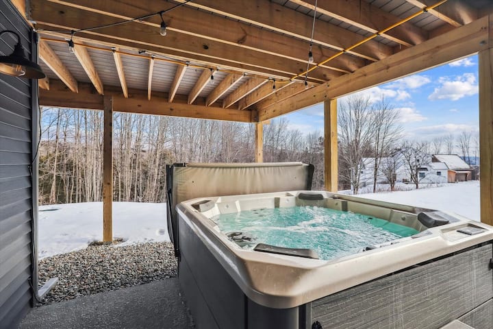 ストウの町の近くにある、世界クラスのスキー場や活気あるビール醸造所からわずか数分の、プライベートな丘の上の隠れ家的な宿泊施設です。山での1日やダウンタウンの探索の後は、お子様が広々としたゲームルームでシャッフルボードを楽しむ間、ジャグジーに浸かりましょう。いつもと違うことをしたいですか?南に10分車で行けば、ウォーターベリーの歴史的なダウンタウンで本物のバーモント料理を楽しむことができます。また、風光明媚なウォーターベリー貯水池で1日を過ごすこともできます。