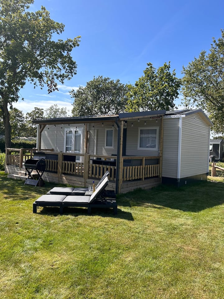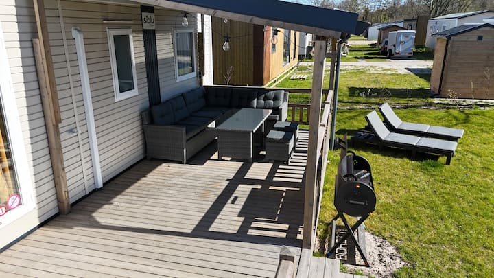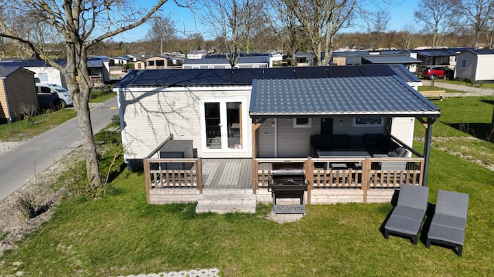 海とビーチの近くにある真新しい6人用シャレー、エアコン付き
