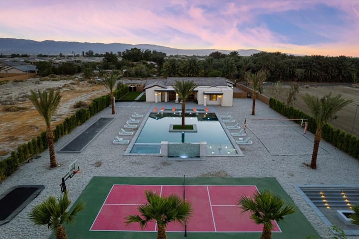 巨大プール、ピックルボールが楽しめるナハラ砂漠のオアシス