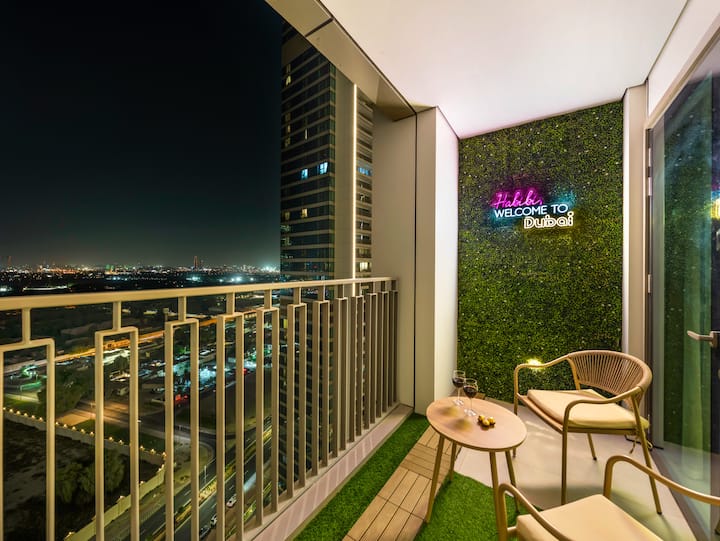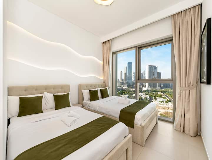 スタイリッシュな2ベッドルーム|素晴らしいシティビュー|ドバイモールまで徒歩