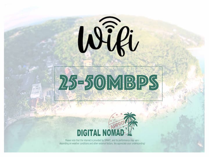 窓辺にテーブルを置いた専用のワークスペースがあり、音楽を流し🎶、さわやかな風を感じ、穏やかな景色を楽しむことができます。 お部屋には高速Wi-Fi (80 MBPS )が備わっており、リモートワークやレジャーに最適です。