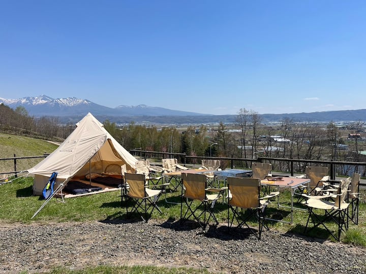 丘の上に立つ孤高のロケーションに位置し、一棟貸切りの高級宿で、富良野平野や北の峰を一望できます。