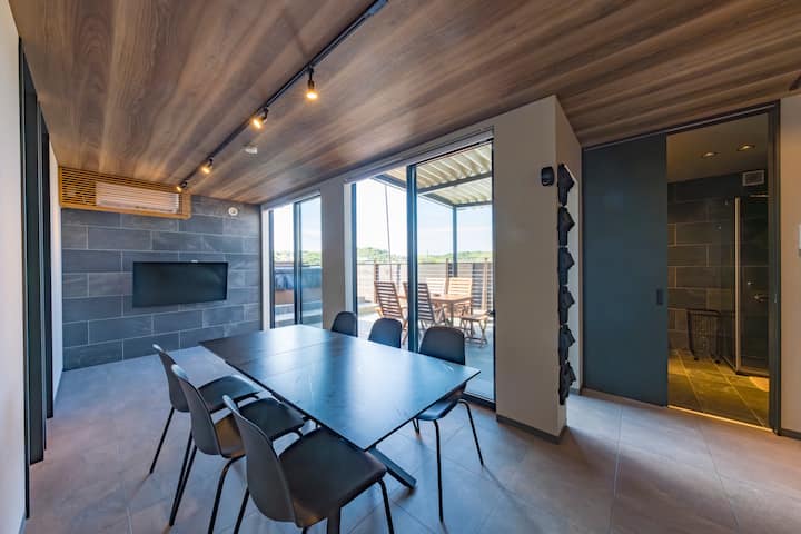 各棟に専用サウナ、水温調節可能なチラー付き風呂、大型ジャグジー、BBQガスグリルが楽しめます。雨天時でも安心してBBQをお楽しみいただけるよう室内に少煙グリルを備えており、天候に左右されず快適にご利用いただけます。
