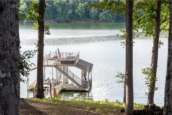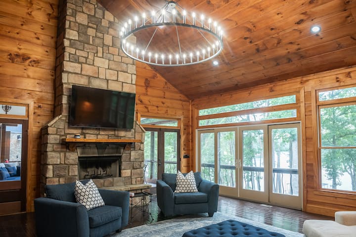 ラニア湖のステラブルーでのバケーションへようこそ。ほぼすべての部屋から大きな水辺の景色をすぐに楽しむことができ、深い水辺にある2階建てのダブルスリップドックでは、日中は湖の生活をすべて楽しむことができます。 プロによって装飾された3ベッドルーム、3バスルームのレイクフロントの家では、素晴らしい屋外の集まりスペース、屋外キッチン、屋外ダイニングエリア、設備の整ったゲームエリア、テラスレベルのバーがあり、夜まで休暇を楽しむことができます。