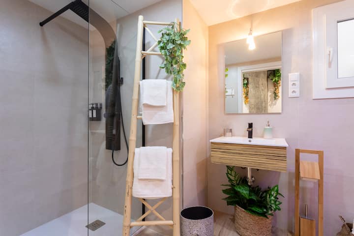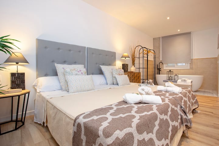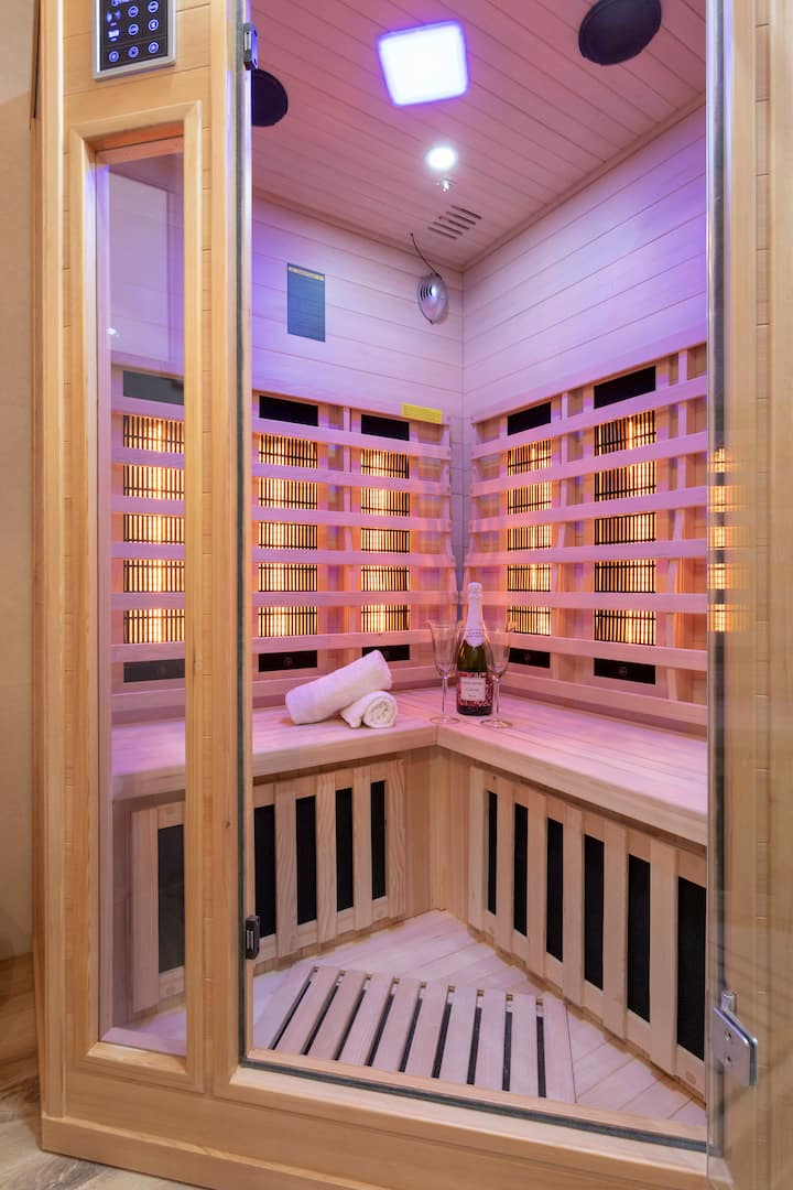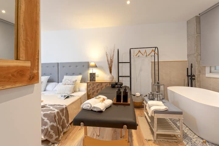 サウナとデザイナーバスタブを備えたウェルネスアパートメント