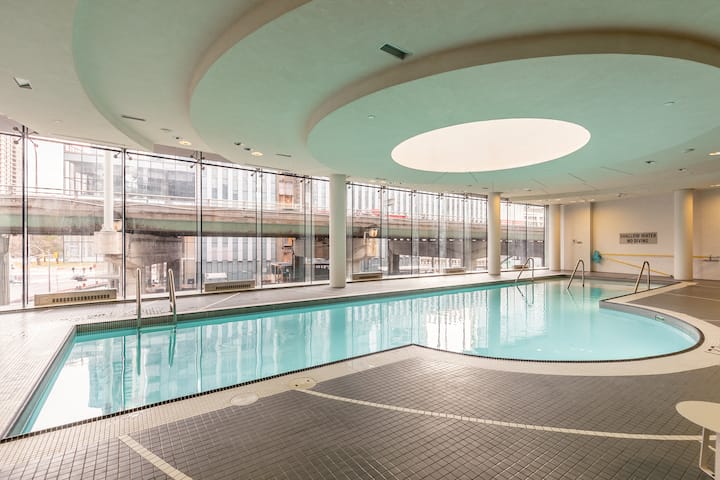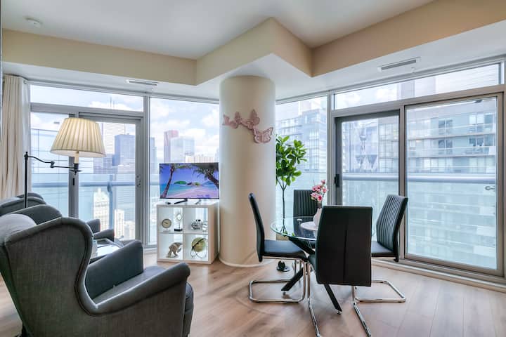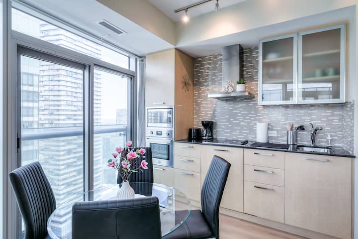 トロントのダウンタウンにあるモダンな1ベッドルームのコンドミニアムへようこそ!40階以上からの素晴らしい街の景色をきっと気にいっていただけるはずです。CNタワー、人気のアトラクション、レストラン、エンターテイメントから数歩の場所にあるこのユニットは、次のものを提供します: