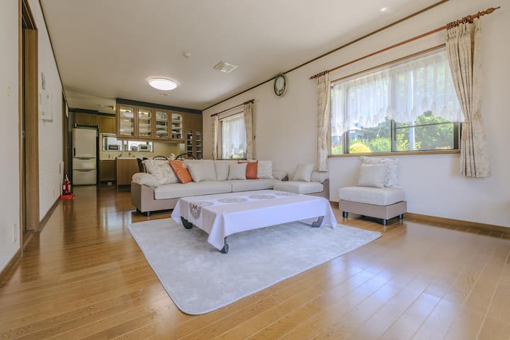 河口湖が一望できます。湖まで徒歩4分/和洋折衷の一軒家貸し切り/駐車場6台/自然に囲まれた家
