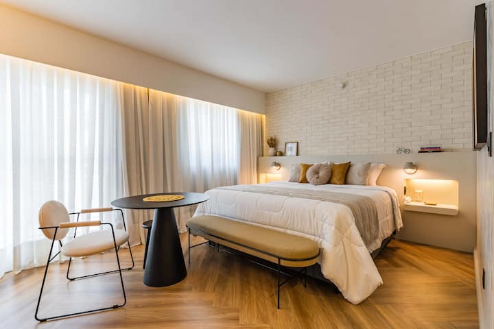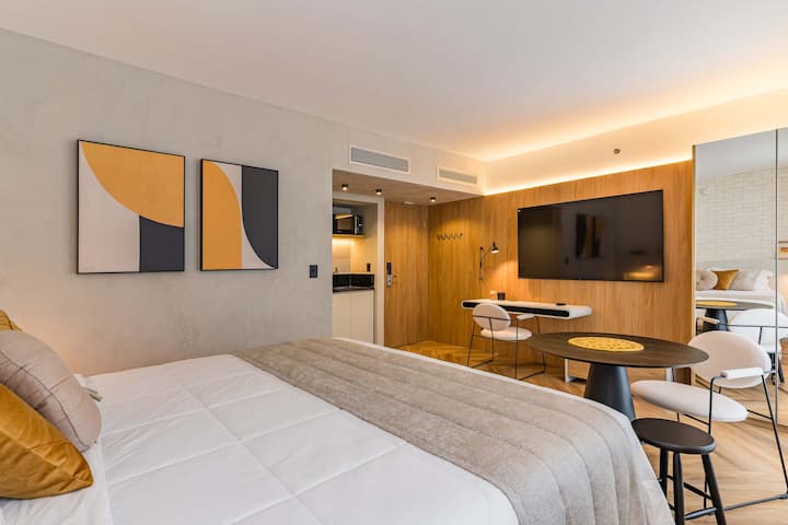 Bem - vinde à Cyclinn! 私たちは旅行に情熱を注いでおり、素晴らしい体験を提供するために努力しています。 お気にいりのイベント、仕事、レストランの近くに宿泊先が必要ですか? あります!私たちのユニットはユニークな装飾が施されており、モダンで立地が良く、Wi - Fi、65インチテレビ、プレミアムリネン、プール、ジムなどが備わっています。 仕事でもレジャーでも、忘れられない滞在にぴったりのお部屋をご用意しています!