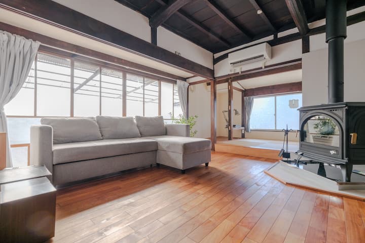 薪ストーブの炎に癒され、広々とした気持ちの良い空間でゆるりとお過ごしください。