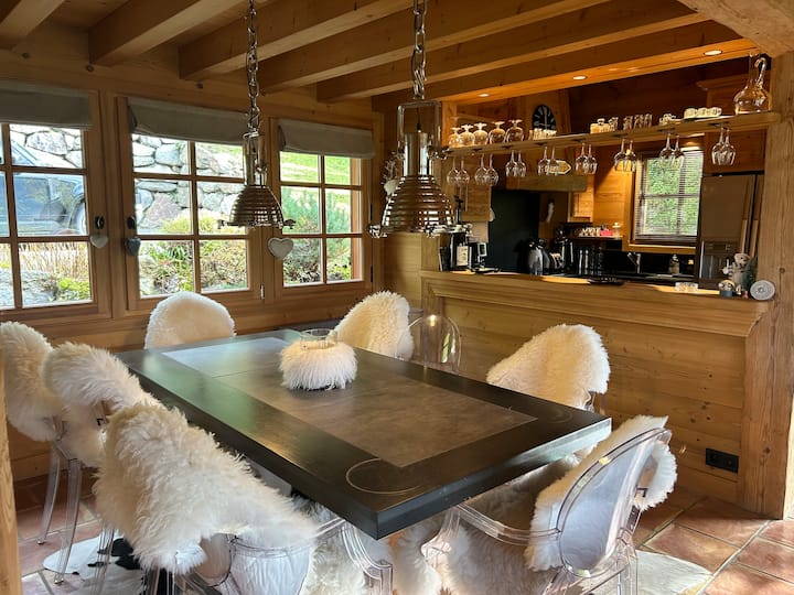 フランス、オーヴェルニュ・ローヌ・アルプ地域圏、ムジェーヴのまるまる貸切のシャレー