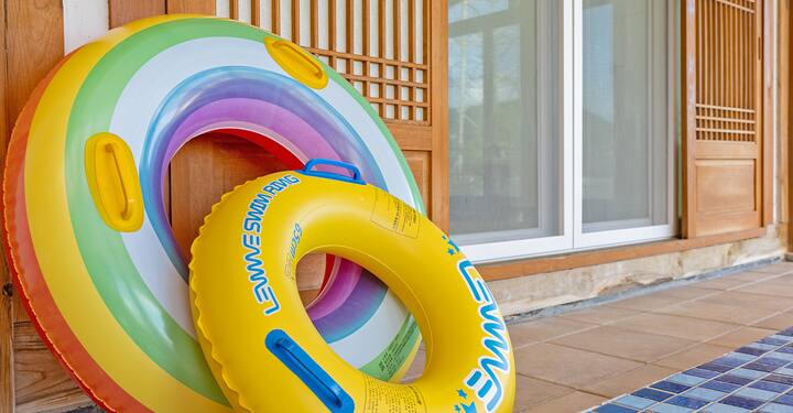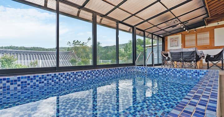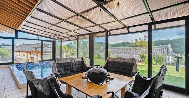 一戸建てで、各部屋にはプールとバーベキュー場があります。
