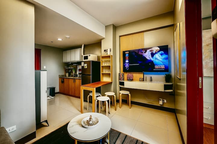 無料駐車場とWi-Fiを備えたモダンな1ベッドルームのコンドミニアム