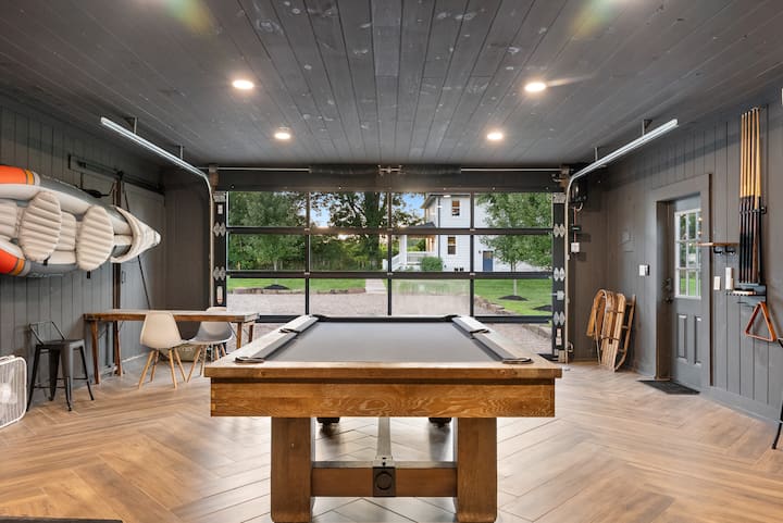 専用コードでキーレスエントリー。ファームハウス、ブラックバーン・ゲームルーム、フィットネスジム、および11エーカーの敷地全体をご利用いただけます。