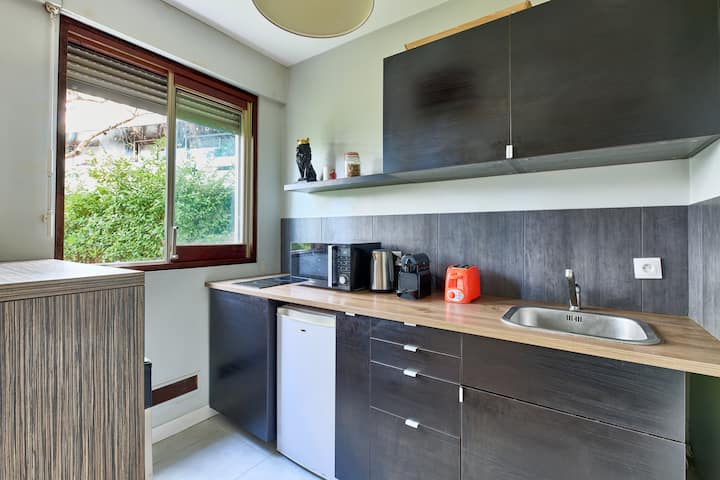 ご自宅のように調理するためのすべて:コンロ、電子レンジ、カプセル付きネスプレッソ、ケトル、調理器具。